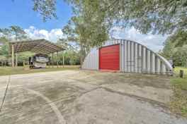 Located just outside the thriving Crestview corridor, this exceptional 4.47 acre property offers a rare blend of commercial flexibility and expansive outdoor space. Upon entering through newly installed electronic gates, you'll immediately appreciate the scale of what awaits: a 5,000 square foot Quonset hut set atop a 15 inch concrete slab, complete with a loading dock, full utility access, and a rooftop sprinkler system designed to moderate interior temperatures. Alongside the main structure sits a new pole barn sized for a 45 foot RV, and the site is further enhanced by two municipal water meters, a deep water well, two like new septic systems, and three full RV hookups including 30 AMP and 50 AMP service.