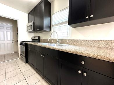 The updated kitchen is equipped with a dual stainless-steel sink, gas stove, and tile flooring, providing both style and functionality. The bathroom has been refreshed with modern light fixtures to add a contemporary touch. Residents also enjoy the convenience of on-site laundry facilities.