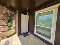 The kitchen is a cook's dream with a stainless range, black refrigerator, black dishwasher, and a white range hood. This home is all-electric, ensuring energy efficiency. Additionally, it comes with washer and dryer connections for your convenience. Outside, you'll find a private backyard, ideal for outdoor activities or simply enjoying the Texas sun. The property also includes two covered parking spaces.