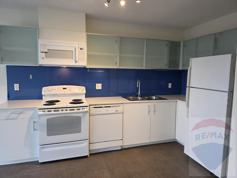 HOME: Bright and inviting upper-floor suite in a well-maintained mid-rise building! This home features an open-concept kitchen, living, and dining area, perfect for modern living and entertaining. The kitchen offers a full white appliance package, a striking blue backsplash, and plenty of space for a dining table or island. The spacious bedroom easily accommodates large furnishings and a desk, while the cheater ensuite includes a full bath with a relaxing soaker tub. Enjoy the convenience of in-suite laundry with a stacker washer and dryer.