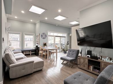 Stunning luxury condo for rent in the highly sought-after Sparrow Hill section of The Heights! This bright, airy 3-bedroom, 2-bath apartment offers approximately 1,134 sq ft of stylish living space. The modern kitchen features stainless steel appliances and quartz countertops, complemented by hardwood floors throughout. Enjoy a private balcony, in-unit washer and dryer, pantry, high ceilings, skylights, and oversized windows that fill the home with natural light. Each room includes efficient ductless split heating and cooling systems. The unit also offers dedicated parking spaces in the building, along with built-in shelves for extra storage. Conveniently located near Journal Square, with easy access to the PATH station, NYC bus service, Holland Tunnel, and NJ Turnpike, and just moments from local cafes, shops, and the vibrant Little India neighborhood.