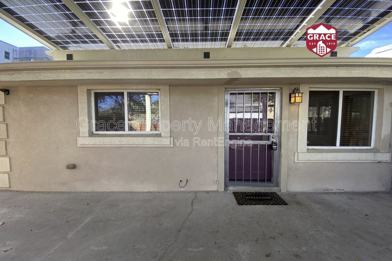This two bedroom, one bathroom duplex in south Denver near Harvard Gulch Park with private garage and shared yard! Walking into your new home, be greeted by the sleek, modern solar panel array providing eco-friendly energy and a shaded retreat for your home and patio. Through the entrance, you arrive at a spacious living room leading to the kitchen and back patio. The kitchen has a glass-top stove, fridge/freezer, dishwasher, disposal, and a stacked washer/dryer. Out the back door, you have additional patio space, a shared fenced yard, and access to your private garage space, which is entered from the alley. Back inside, down the hall, are the two bedrooms and a full bathroom conveniently accessed from the hallway. Enjoy a great location close to all arteries and some of cities best parks.