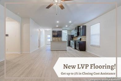 Welcome to 13034 Maestro Spark - a beautifully maintained 3-bedroom, 2-bath home located in the sought-after Whisper Falls community. Built in 2018 and thoughtfully updated, this 1,662 sq ft residence offers the perfect blend of comfort, style, and convenience. Step inside to an open-concept layout featuring a spacious living area, dining space, and a modern kitchen with stainless steel appliances including a 4 Door French Samsung Refrigerator, sleek cabinetry, and ample counter space. Fresh flooring throughout the main living areas and bathrooms adds a contemporary touch, while cozy carpeted bedrooms provide warmth and comfort. The primary suite includes a private bath and walk-in closet, and the two additional bedrooms are ideal for guests, family, or a home office. Outside, enjoy a large backyard perfect for entertaining or relaxing. Highlights: * New flooring in living areas and bathrooms * 2-car garage * Quiet neighborhood with easy access to Hwy 90 and Loop 1604 * Whisper Falls amenities: pool, clubhouse, trails, playground