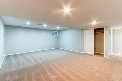 An excellent, fully renovated corner property with abundant sun-light in a vibrant golf-course community" minimum 6 month lease". Main features: 1) Ground floor: Living room (Wood floor, with fireplace), 1 guest bathroom and a laundry room with cabinets. - Kitchen is all new - new counter tops and cabinets, etc. 2) First floor: Three carpeted rooms a) Large master bedroom has an attached bath with a walk-in closet. b) The other two rooms have a shared bathroom outside. 3) Basement is fully done with 1 complete washroom, 1 full large-size extra room (tiled) and abundant living space. This living space is carpeted. 4) Large 2 car garage with a 2 car drive-way. Ample street parking on a wide street. 5) Shaded full patio deck facing a large open tree-lined shared space. Salient features: 1) The town-house is fully renovated inside - a major plus. 2) 4 major appliances included - Stove, fridge, Washer, dryer. 3) A large front-lawn at your door step - a unique feature only for this townhouse due to its corner location. 4) You'll never have a parking problem. Check street view. 5) There is dedicated storage space in the basement with large shelves - very useful. 6) Nice large golf course across the road for those nice denver walks. Electricity paid by tenant. All Lawn-care and driveways are the HOA's responsibility. No water bill.