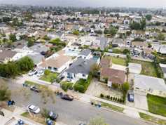 Inside discover an inviting living room that flows seamlessly into the formal sitting area and dining space, perfect for entertaining. The remodeled kitchen is a showstopper with sleek white cabinets accented by gold hardware, high ceilings, recessed lighting, and all appliances included.