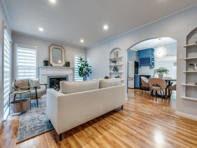 Nestled in the coveted M Streets neighborhood, this beautifully updated home seamlessly blends timeless historic character with sophisticated modern style. Featuring 3 spacious bedrooms, 2 full bathrooms, and a versatile bonus space perfect for a second living area, formal dining room, or office. This home offers both charm and flexibility! Step inside to find all new flooring and designer light fixtures (2024), setting the tone for high end finishes throughout. The stunning, fully remodeled kitchen has been thoughtfully opened to the dining area and boasts matte black GE appliances, quartz countertops, shaker style cabinetry, a wine cooler, and designer gold hardware making this the perfect space to entertain in style! Retreat to the spa like primary en suite bathroom with a freestanding soaking tub, new vanity, modern stacked tile, and elegant finishes. Both bathrooms have been beautifully redesigned with LED lighted mirrors, new toilets, and sleek gold fixtures. Additional recent upgrades include HVAC system (2024) and tankless water heater (2025) ensuring comfort and efficiency for years to come. Don't miss your opportunity to own a truly special home that offers both historic charm with luxurious modern upgrades-all in one of Dallas' most desireable neighborhoods!