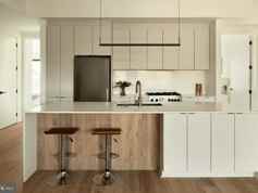 European imported kitchen cabinets, waterfall quartz countertops, wide plank white oak floors, massive Pella windows and private storage/mailbox. This particular unit features 2 bedrooms with custom closets, 2 full bathrooms, in-unit laundry, custom kitchen, and oversized windows. Additional 45 SF private storage space in the basement is included. Building offers trash space.