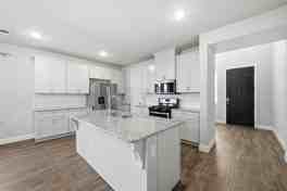 This stunning home features an open-concept layout with a gourmet kitchen offering abundant cabinetry, sleek finishes, a walk-in pantry, and a large island that connects to the dining and living areas. Designer lighting enhances the home’s modern feel. The main-level primary suite includes a spacious bath and room for a sitting area. The second floor offers a versatile loft that can function as a game room, media area, office, or additional living space. Three secondary bedrooms and two full bathrooms provide flexibility for household members or guests. The covered patio overlooks a large backyard suitable for outdoor enjoyment.