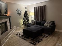 Welcome to this completely renovated 2-bedroom, 1.5-bath duplex in the highly rated Francis Howell School District, offering 1,512 sq ft of beautifully finished living space. From the moment you arrive, the charm and thoughtful updates are clear. Step onto the covered front porch—ideal for a quiet morning coffee—and head inside to a warm and inviting living room, centered around a cozy fireplace. Fresh paint, new flooring, upgraded lighting, and modern finishes throughout set the tone for a home that feels brand-new. Just off the living room is the updated half bath, conveniently located for guests and everyday use.