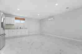 The home features A/C and heat in the spacious living room and both bedrooms, a modern open-concept layout, and abundant natural light. The full kitchen is equipped with stainless steel appliances (gas stove, refrigerator, and microwave), granite countertops, and ample cabinet space—perfect for cooking and entertaining. Dine indoors or enjoy meals in the private patio area.