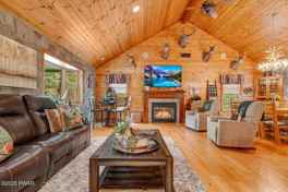 Welcome home to this absolutely FANTASTIC home nestled on 4.85 acres in a very quiet location, PERFECT for fishing, camping, gathering or just relaxing! This home features GORGEOUS tongue & groove w/ vaulted ceilings and tons of space within the open floor plan main level. Enjoy custom stonework throughout the entire home! Attention to detail in every inch! Brand new kitchen with custom cabinets, granite countertops, stainless appliances and ceramic tile flooring. Enjoy a huge living room, dining room and gathering room leading out to the new back deck. Main level has a primary bedroom suite with a walk-in closet and the most beautiful, custom bathroom with double sink and custom tile work. It really is a MUST SEE! Home has multiple fireplaces that create such ambiance and make it feel very cozy! Head downstairs and enjoy a fully finished basement w/ a family room, a full bath plus laundry room & 4 bedrooms. This space gives you PLENTY of room to invite everyone!In total, this home features 5 bedrooms, 2.5 baths and 3 family/gathering areas inside, a covered front porch and rear deck outside! Head outside and enjoy the property without disruption. There are no homes within sight! It really is the perfect escape!Enjoy the peace and quiet that only a place in the country can offer!