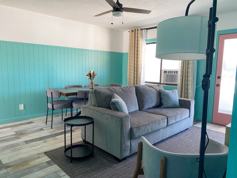 Bright & Modern Beachside Apartment Steps from Treasure Island Beach - Fully furnished (utilities included). Enjoy coastal living at its best in this fully updated apartment located directly across the street from the white sands of Treasure Island Beach. Designed with a fresh, modern style, this retreat offers both comfort and convenience in the perfect seaside location. Features You'll Love: Spacious Modern Living Area: The open concept living room is anchored by a sleek sofa bed, flat-screen TV, and stylish wood-and-metal coffee table, creating a perfect spot for movie nights or lounging after the beach. Updated Kitchen: The fully renovated kitchen boasts white cabinetry, bold patterned backsplash, butcher block countertops, stainless steel appliances, and a round dining set, ideal for cooking and entertaining. Fresh Design Touches: Contemporary lighting, mirrors, and coastal-inspired decor give the home a breezy, inviting atmosphere. Convenience: Equipped with air conditioning, flat-screen TVs in both the living room and bedrooms and plenty of storage, this apartment makes beachside living effortless. Step outside and you're just across the street from Treasure Island Beach, where you can stroll the shoreline, watch sunsets, or enjoy water activities. You'll also be walking distance to restaurants, shopping, and local attractions. Whether you're seeking a relaxing beach getaway or a stylish home base near the Gulf, this updated apartment offers the perfect mix of comfort, style, and unbeatable location.