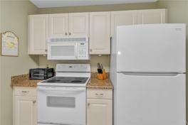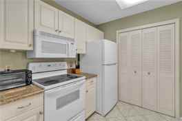 Come cozy up this season in this furnished turnkey gem! Enjoy cooking in upgraded kitchen boasting beautiful granite counters & pantry for extra storage. Tile & plush carpets flow t/o, making it feel warm & inviting. Feel at east w/ impact windows, in-unit washer/dryer & an assigned covered space. Take in stunning expansive lake/golf course views! LOCATION! Near heated pool, clubhouse, Pro Shop, pickle ball/tennis court! Plus quick access to shopping/beach! 18-hole golf course-OPEN TO PUBLIC! Rent includes: cable/internet/water/sewer/trash/amenities/assign covered parking/electric up to $125!