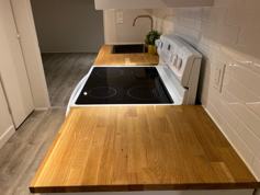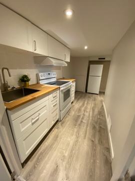 Beautifully renovated, currently furnished (but can come unfurnished) basement studio (approx. 500 square feet) on a quiet, tree-lined street. Private entrance, new IKEA kitchen, new PELLA windows, new appliances, new toilet and shower, new vinyl flooring, freshly painted walls and ceiling. Shared laundry. 5-minute walk to bus and streetcar. 10-minute walk to No Frills, Shoppers Drug Mart, Fit4Less, God Speed Brewery, and the wonderful flavours of Little India. 15-minute walk to Coxwell subway station, Woodbine Beach and boardwalk. About us: We're Erin and Dave and we have a 2-year-old toddler. We've lived in the Upper Beaches neighbourhood for just over 6 years now and we love it. We're friendly and easy-going and we look forward to welcoming you to 32 Bellhaven. About you: Clean, quiet, respectful. The unit is for single occupancy only. You’ll also need to fill out a rental application, provide proof of income, and an up-to-date credit report. $1,450/month (utilities and high-speed Internet included). *Available as soon as you want it.