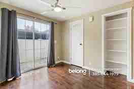 With three bedrooms and one full plus one half bath, the home provides distinct spaces for sleeping, studying, or simply unwinding. In the primary bedroom you’ll find ample closet space and access to the private patio balcony overlooking the inviting community grounds.