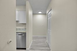 Welcome to this beautifully upgraded condo. As you enter, you’re greeted by a hallway that leads into the updated kitchen, featuring a dishwasher, refrigerator, and electric stove. Next to the kitchen, you’ll find a convenient storage closet. Through the kitchen is the dining area, highlighted by a gorgeous light fixture. The living room offers plenty of natural light with its large open windows.