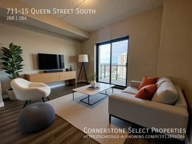 Welcome to Suite 711 at Platinum Condominiums, a stylish and contemporary residence in the heart of downtown Hamilton. This bright and airy suite features two full bedrooms with a desirable split floor plan that provides exceptional privacy, perfect for roommates, guests, or a dedicated home office. The open concept kitchen includes modern finishes, stainless steel appliances, and a large island that flows naturally into the living space, creating an ideal layout for cooking and entertaining. A standout feature of this suite is the spacious balcony, offering an inviting outdoor extension of your living area with plenty of room to relax and enjoy the city views. Residents of the Platinum building enjoy premium amenities including a fitness centre, rooftop terrace, party room, and yoga deck. With premier walkability and close proximity to vibrant cafes, dining, and transit including the future LRT stop, Suite 711 delivers an outstanding blend of comfort, style, and urban convenience.