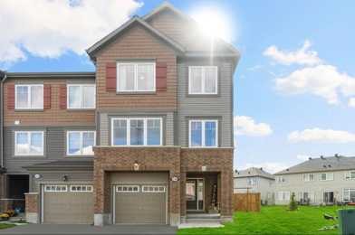 Ottawa, Stittsville. Step into this spacious 1,944 sq. ft. END UNIT Townhouse for rent with 3 bedrooms and 2.5 bathrooms perfectly situated on a large pie-shaped lot. Available January 1st, 2026. The foyer leads to an open, bright, carpeted flex room featuring patio doors that open to the massive fenced backyard w/deck, plus a laundry area with access to both the yard and the attached single car garage. The formal living and dining area features upgraded grey-toned hardwood floors and sunny south-facing windows, creating a bright and inviting space. The eat-in kitchen impresses with modern grey cabinetry, stainless steel appliances including a gas range, fridge, dishwasher and microwave, granite countertops and an oversized pantry—with convenient access to the powder room. Open to the carpeted great room, this area is ideal for family gatherings, where you can unwind by the cozy gas fireplace. Upstairs, you’ll find a spacious carpeted primary bedroom w/4pce ensuite, two generous secondary bedrooms, one featuring upgraded flooring and a walk-in closet. Full 4pce family bathroom. Central Air. Nestled in a quiet, upscale residential enclave in the Emerald Meadows/TrailWest area close to shopping centers, grocery stores, schools, parks, transit and recreational facilities — everything you need is just a short drive away. The hot water tank rental is extra at $50.
