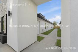 Welcome to 2112 Cassandra, a stunning 3-bedroom, 2-bathroom apartment located in the vibrant city of Mission, TX. This front unit boasts a modern open floor plan, high ceilings, and contemporary fixtures that create a spacious and inviting atmosphere. The kitchen is equipped with stainless steel appliances, including a refrigerator, microwave, and stove/oven, and the convenience of an in-unit washer and dryer. The master bath adds a touch of luxury, while ceiling fans throughout ensure comfort all year round. This apartment also features a carport and central AC for added convenience. As a resident, you'll enjoy 24/7 maintenance support and the inclusion of lawn care, leaving you more time to enjoy your new home. While all utilities are the responsibility of the tenant, the apartment is pet-friendly with breed restrictions. Please note, this is a no-smoking property. A 12-month lease is required. Experience the perfect blend of comfort and convenience at 2112 Cassandra.