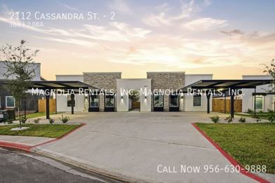 Welcome to 2112 Cassandra, a stunning 3-bedroom, 2-bathroom apartment located in the vibrant city of Mission, TX. This spacious home boasts a modern open floor plan, high ceilings, and contemporary fixtures that add a touch of elegance. The kitchen is equipped with stainless steel appliances, including a refrigerator, microwave, and stove/oven, making meal preparation a breeze. A washer and dryer are also included for your convenience. The master bedroom features an en-suite bathroom, providing a private sanctuary within the home. The property also includes a large backyard, perfect for outdoor activities. For your comfort, the apartment is equipped with central AC and ceiling fans. A carport is available for your vehicle and 24/7 maintenance support is provided for peace of mind. This pet-friendly apartment comes with breed restrictions. All utilities are the responsibility of the tenant. Lawn care is included, freeing up your time to enjoy the comforts of your new home. A 12-month lease is required. Smoking is not permitted in the apartment. Experience the perfect blend of comfort and convenience at 2112 Cassandra.