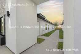 Welcome to 2112 Cassandra your new home in the heart of Mission, TX! This front unit apartment boasts three spacious bedrooms and two full bathrooms, including a master bath. The open floor plan is perfect for entertaining, with a living room that features high ceilings and modern fixtures. The kitchen is a chef's dream, equipped with stainless steel appliances, a refrigerator, microwave, and stove/oven. For your convenience, a washer and dryer are included in the unit. The apartment is pet-friendly (with breed restrictions) and comes with a carport for your vehicle. Enjoy the comfort of central AC and ceiling fans to keep you cool during those hot Texas summers. As a resident, you'll have access to 24/7 maintenance support and lawn care is included, so you can spend your weekends relaxing instead of doing yard work. Please note that this is a no-smoking property and the tenant is responsible for all utilities. A 12-month lease is required. Experience the best of Mission living in this beautiful apartment!
