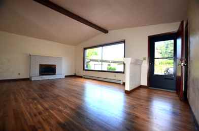 A two-bedroom one-bath mid-century modern ranch-style apartment with direct access to the outside from the kitchen.