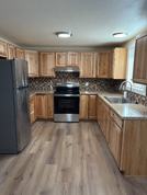 -Apartment has been fully remodeled! Brand new vinyl windows, paint, gorgeous vinyl plank flooring, oversize vanity, custom tile shower, hickory kitchen cabinets, and stainless steel appliances.