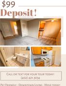 Pet friendly downtown apartment available now near shopping and public transit! Call or text today for your in-person tour! Number phone in photos!