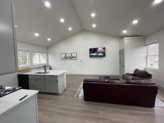 Designer Finishes: Sleek cabinetry, quartz countertops, black appliances, and luxury vinyl plank flooring create a polished aesthetic.