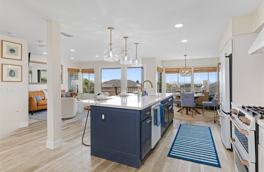 Inside, the main living area opens wide to the coastline through cantina-style doors that invite in natural light and ocean breezes. A spacious open floor plan connects the living room, dining area, and fully updated kitchen - complete with high-end appliances and thoughtful finishes - making it an easy place to cook, gather, unwind, and soak in the views. Nearly every room looks out toward the water, creating a serene backdrop for your daily routine.