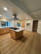 Inside, an open and naturally bright layout creates a warm, welcoming feel. The kitchen features natural wood cabinetry, quartz countertops, and updated appliances. Both bathrooms have been fully renovated with contemporary finishes and updated vanities.