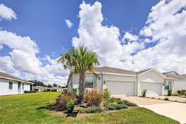 Ocala's Finest Resort-Style Living! Welcome to Ocala Preserve an exclusive, guard and gated community with loads of amenities for those who prefer finer things in life! This Siesta model by DR Horton features maintenance free living (lawn care and exterior maintenance included). Custom paver driveway and sidewalk lead to the end unit with side entry front door, open floor with spacious living room with high ceilings and triple sliding door to screened in lanai., this area leads to primary bedroom with tray ceilings in the far left back of home and primary bath with double vanities, granite countertops and tile surround with solid glass door shower with grab bars and walk in closet. Stepping back across the home you are greeted with dining area and large inviting kitchen with spacious island with room for 4 - 6 bar stools and sink. Granite countertops and stainless steel appliances as well as walk in pantry. The 3rd bedroom/office/den is off of kitchen and would also make a great hobby room with french doors. Heading towards front of home is the laundry closet, 2nd bedroom that shares the 2nd bath with the guests. The garage is a 2 car with garage door opener and is home to the 2023 hot water heater and 2023 Hvac system in ceiling as a space saver, 2023 architectural roof. Enjoy a private oasis with access to Walking/Hiking/Bike Trails, Tennis and Pickleball Courts, Resort Style Pool, On-Site Restaurant, Athletic Center, The Golf Club, Clubhouse, Day Spa and Dog Park. Relax on a kayak and watch the sunrise over our beautiful lake. Unwind at the end of your day with a glass of wine on the expansive Veranda, or enjoy a Chef inspired meal at Salt and Brick restaurant. All very close to the world equestrian center, hits and rainbow springs!