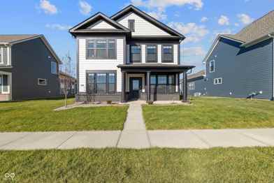 Make the Discovery... Warm & striking BRAND NEW 4 bedroom, 4 bathroom, 3-car garage home in Abbott Commons featuring a bright and open main level with office space, wide-plank flooring, large windows, a guest suite, and quartz countertops throughout. Tiled gas fireplace with a stained beam mantel flowing into the open kitchen appointed with subway tile, stainless steel appliances, a massive center island with dual sinks, a breakfast bar, and cabinets GALORE! Upstairs, a generous loft anchors the level and leads to two spacious bedrooms served by a full bath and convenient upper-level laundry room with a mop sink. The expansive primary suite offers a tray ceiling, a large walk-in closet, and bathroom featuring a dual vanity, and tile flooring into an oversized tiled walk-in shower. The covered rear patio includes a full outdoor fireplace for year-round enjoyment, and the oversized rear-load garage provides excellent storage flexibility. Community amenities to include a swimming pool with clubhouse, playground, dog park, and trails for walking or biking. Enjoy year-round events at the Nickel Plate District Amphitheater or Geist Waterfront Park's beach, trails, playground, and launch areas. Seeing is believing!!