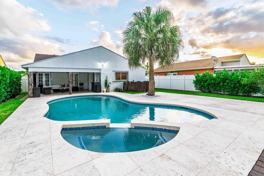 Resort-style home with private pool & jacuzzi! Freshly painted with new roof, new deck, and accordion shutters on all windows. Features 3 bedrooms, 2 full baths, a furnished den perfect for guests, office, or playroom, plus a large bonus room ideal for TV or entertainment. New washer and dryer! Two bedrooms include flat wall TVs. Excellent school district. Conveniently located near major highways, Boca Town Center Mall, and stunning beaches. Patio comes furnished and ready for outdoor living!
