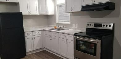 Newly renovated mobile home, with a covered front porch. Vinyl flooring in kitchen. New Carpeting in living room and bedrooms. Formica countertops, with shaker style cabinetry in kitchen.