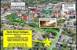 Downtown Springdale new construction stacked duplex with 2 parking spaces. Razorback Greenway trail is in front yard, and home is within close proximity of Luther George Park. This 2 bedroom, 2nd floor unit comes with all new appliances including a refrigerator and a stacked washer and dryer. This brand new home has granite countertops, LVP floors, a nice front porch, and a large shared yard for activities. The construction project to the West is for new townhomes.