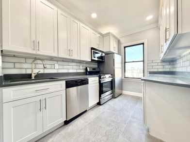 Welcome to this fully gut-renovated two-bedroom plus office, perfectly positioned on the top floor of a well-kept two-family home in Sunnyside. Bright, modern, and move-in ready, the apartment features wide-plank floors, recessed lighting, and large windows that bring in beautiful natural light throughout. Both bedrooms are comfortably sized, and the dedicated office is ideal for working from home or additional storage. The living room offers an easy, flexible layout, and the in-unit washer and dryer adds everyday convenience. The windowed kitchen has been completely redesigned with white shaker cabinetry, subway tile backsplash, quartz countertops, and full-size stainless steel appliances including a dishwasher. The bathroom is finished with marble-style tilework, a glass-enclosed shower, and contemporary fixtures. Several rooms enjoy open-sky exposures, including a clear view of the Manhattan skyline from the rear windows. Located just off Queens Boulevard, you're moments from neighborhood favorites such as Ida's Nearabout, Brookside Market, The Sconery, and Kora. Grocery stores and essentials-including C-Town, HMart, Key Food, and Rite Aid-are all within easy reach. Transportation is exceptional, with the 7 train at 52nd Street, the Woodside LIRR for quick access to Manhattan and Long Island, and multiple bus lines nearby. A clean, modern home offering comfort, convenience, and excellent access to local amenities-ready for immediate move-in.
