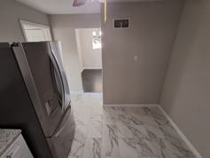 Once inside, you'll notice the dark finish on the hardwood floors, brand new laminate tile in the kitchen, and fresh pain on the walls. This unit has been completely redone from top to bottom, with brand new appliances in the kitchen topping off the renovations. The living room blends seamlessly with the dining room and kitchen, creating an ideal space for entertaining guests.