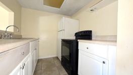 This is a spacious 1-bedroom apartment on the second floor of a quaint little apartment complex in Daytona. Located between Ridgewood and the Halifax River on quiet Palmetto St, with lovely greenery surrounding the property. Conveniently located close to restaurants, shopping, and laundromat. This unit has a bathtub/shower combo. 1 assigned parking space provided per unit. And the brown drawer in the kitchen will be painted white.