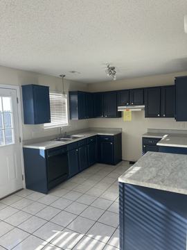 FOUR-bedroom duplex has wood flooring and brand-new carpet for each bedroom. Freshley painted and new light fixtures and new mini blinds. Quiet neighborhood in cul-de-sac. Perfect for families. Close to I-49. Two car garage with automatic door opener. NEW appliances in remodeled kitchen. Washer and dryer included. Downstairs master has a walk-in closet along with a bathroom. Tenant is responsible for water, gas and electric. Lawn upkeep. At lease signing you will need the deposit and 1st month's rent.