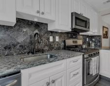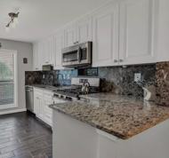 •Fully updated kitchen with granite countertops, modern cabinetry, and stainless steel appliances