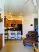 Ready for immediate occupancy. Perfect for single person or couple. Welcome home to Casitas Las Rosas. Great condo located across from Old Town La Quinta. Beautiful one bedroom, one bath situated on the first floor with easy access to pool and spa. fully furnished. Walk in closet is over-sized. The kitchen is well appointed with stove, microwave, fridge/freezer, granite counter tops. Bath is generous in size with tub/shower combo, granite counter tops. The laundry closet has stacked washer and dryer. Water, trash, internet, cable TV included. Ideally located in the heart of La Quinta. Super location and access to pool.