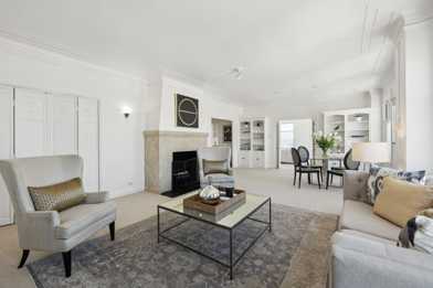 This highly desirable floor plan boasts a variety of stunning views, including the city, water, mountains, and spectacular sunsets. The living room is a highlight, featuring sweeping vistas of Nob Hill and the Transamerica Pyramid, a cozy decorative fireplace, rich crown molding, and custom built-ins. Wake up in the bedroom to scenic sights of Buena Vista Park, Lone Mountain, and Cathedral Hill. The unit also includes an entry hall with space perfect for a home workspace.