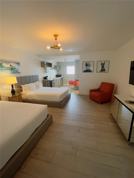This is a studio with 2 queen beds with kitchenette, microwave, small fridge. Available for long term can be furnished or unfurnished. Street parking.