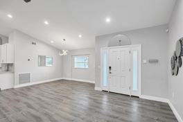 Welcome to this beautifully renovated 4-bedroom, 2-bath rental home located in the highly desirable Eastpointe community. Set on a peaceful cul-de-sac surrounded by lush landscaping, this spacious residence offers an open great-room layout and a split-bedroom floor plan designed for comfort and privacy. Inside, luxury vinyl plank flooring flows seamlessly throughout the home, creating a clean, modern feel with easy maintenance. The bright living room features vaulted ceilings and sliding glass doors that lead to a covered porch—perfect for relaxing or enjoying indoor-outdoor living. Step outside to your private, fully fenced backyard complete with fruit trees, ideal for pets, gardening, play, or quiet afternoons. The upgraded kitchen is a standout, offering stainless steel appliances, 42-inch cabinets, granite countertops, a large eat-at island with an undermount sink and dishwasher, and easy access to the dining area—making everyday meals and entertaining a breeze. The primary suite serves as a peaceful retreat with French doors that open to a flexible sitting area/office/nursery, dual walk-in closets with custom shelving, and a spa-inspired en suite bath featuring a soaking tub, modern glass walk-in shower, dual sinks, and contemporary light-up mirrors. Three additional bedrooms on the opposite side of the home provide great separation for family, guests, or work-from-home needs. A second full bath includes a tub/shower combo and stylish finishes. Additional conveniences include a mudroom just off the kitchen, a separate laundry room, and a spacious 2-car garage with ample storage. Located just off Fruitville Road, this home offers quick access to I-75, top-rated schools, shopping, dining, UTC Mall, downtown Sarasota, St. Armands Circle, and Lido Key.
