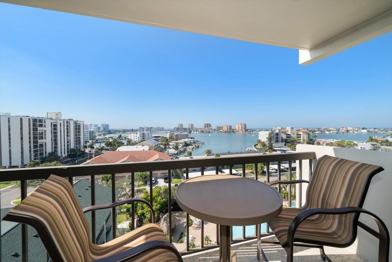 Welcome to a stunning 2-bed, 2-bath corner condo perched on the 9th floor of Island Estates’ tallest tower. With 1,390 sq ft of open living space, in-unit washer & dryer, remote controlled shades, updated windows & sliders; this furnished unit boasts views of the Gulf, Mandalay Bay, and Clearwater Beach from private balconies.