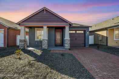 Live the great life at Mulberry Farms, a 55+ active adult community in the Prescott Valley area. Our rental homes aren't just places to live. They're a fresh beginning where new memories are made and cherished ones are shared - where porches become social hubs, and neighbors become family. Daydream Believer is one of our 2-bedroom floorplans that features the largest front porch! You will love to relax and entertain on the large, covered front porch. The open-concept living space features 9 ft ceilings and modern LVP flooring throughout. The fully equipped kitchen is designed with quartz countertops, stainless steel appliances, and ample cabinet/pantry storage. The primary suite features a large walk-in closet and ensuite bath for your personal privacy.