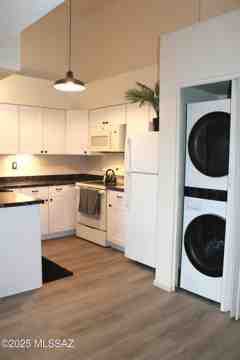 Updated modern 2 bed / 2 bath second-story condo with new floors, new kitchen, new washer/dryer, new bath cabinets, new lighting, and new plumbing fixtures. Primary suite features a spacious walk-in closet. Vaulted ceilings and open layout. Covered porch overlooks tree-lined green space and includes a large storage shed. New hot water heater and HVAC. Quiet east-side community with pool, spa, and clubhouse. Rent includes water, trash, and sewer. Available now. 12-month lease. Owner/Agent. Equal Housing Opportunity. For rent only. All communications and negotiations shall be conducted through the owner/agent.