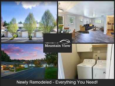 Your search for a spacious, open-concept townhome will end with a visit to Townhomes at Mountainview. We offer a wide selection of two-bedroom two and one-half bathroom homes as well as three-bedroom two bathroom and three-bedroom two and one-half bathroom homes. Your new home will have plenty of space for the entire family and all the conveniences you look for. Each residence comes with an oversized kitchen including black and silver appliances and updated fixtures, walk-in closets and pantries, full-size washers and dryers and the best part is- every home comes with a one or two-car attached garage! Your entire family can enjoy relaxing in a spacious open-concept family room, reading by natural light with stunning views through large windows, or simply relaxing on your expansive deck or patio. When you reside at Townhomes at Mountainview you will have access to something for all ages to love. Townhomes at Mountainview has you covered, because we offer a variety of things to enjoy. Like a playground and community grilling areas for picnicking outside. Our community is nearby some of the best hiking, biking, and jogging trails for those wishing to enjoy nature. Our goal is to offer you the best options in your future home. Each Newly Renovated townhome boasts the best amenities and decor like USB outlets, a gas fireplace, warm-tone paint schemes, and plenty of natural lighting. As a pet-friendly community, we have plenty of open space to play with the family dog. Looking for some excitement? Residing here puts you minutes from fantastic dining, shopping, and entertainment in Puyallup, Sumner, and Tacoma. No matter what you desire in your future community; rest easy knowing Townhomes at Mountainview has you covered. A home with plenty of family space, a great community, and easy access to anything else you want. Contact our leasing office to schedule a tour now.