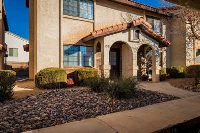 Welcome to this charming 2-bedroom, 1.5-bathroom townhouse located in the vibrant city of St. George, UT. This property offers a comfortable and convenient lifestyle with its well-designed layout and essential amenities. The townhouse features a community pool, perfect for those warm summer days. The Homeowners Association (HOA) takes care of water, sewer, and garbage services, providing you with a hassle-free living experience. This townhouse is not just a place to live, but a community to be a part of. Experience the ease of living in a well-maintained property where your needs are prioritized. Don't miss out on this opportunity to enjoy the best of St. George living. Cabinets in the half bath have been painted black and there is artificial turf in the backyard where the rocks show in the picture.